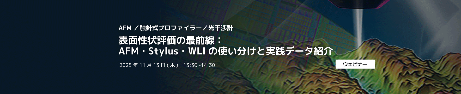 | 13:35~14:05 | 第1部 『表面性状評価の最前線:AFM・Stylus・WLIの使い分けと実践データ紹介』(Live)